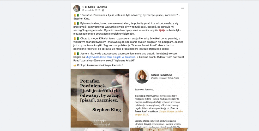 Przygotowaliśmy dla Państwa materiały o internetowej promocji książki. Od czego jednak zacząć kampanię offline? Naszym zdaniem najlepszym rozwiązaniem będzie udział w Międzynarodowych Targach Książki w Krakowie przy wsparciu ze strony Riderò!