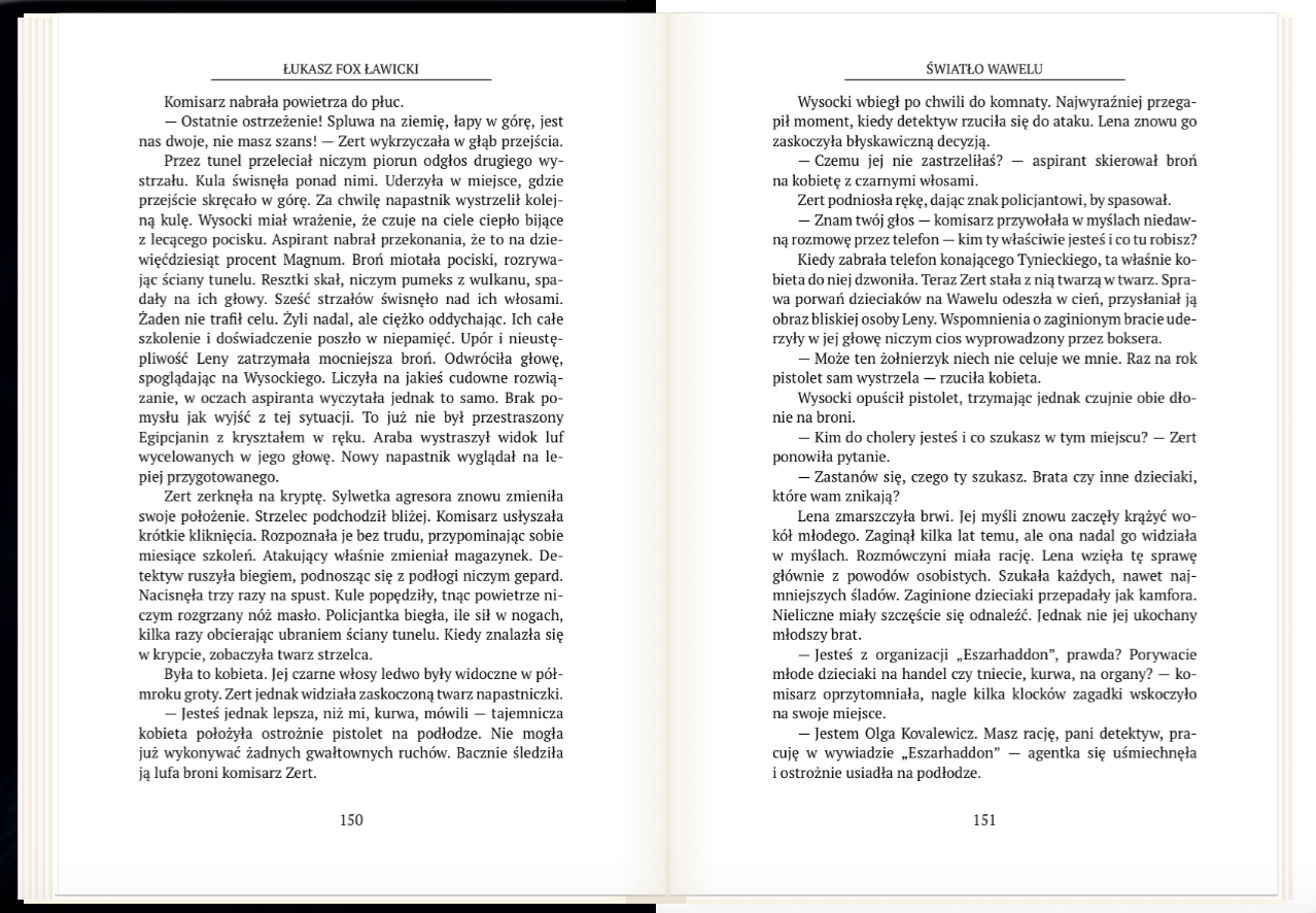 „Światło Wawelu” to dynamiczna mieszanka sensacji, kryminału i fantastyki, której akcja osadzona jest w mistycznym i historycznym Krakowie. Powieść splata dwie linie czasowe: tuszowane zaginięcia dzieci z czasów PRL oraz współczesne śledztwo prowadzone przez Komisarz Lenę Zert. Wszystko prowadzi do ukrywanej przez lata tajemnicy Wawelu – miejsca, gdzie potężna energia czakramu, niemieckie eksperymenty z czasów wojny i tajna baza wojskowa stanowią tło dla odkrycia mrocznej prawdy o zaginięciach. To opowieść o sile ukrytej w starożytnych miejscach, o sekretach rodzinnych oraz o tym, jak przeszłość nieuchronnie wpływa na teraźniejszość.